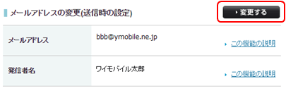 「メールアドレスの変更(送信時の設定)」の「変更する」ボタンを選択します。
