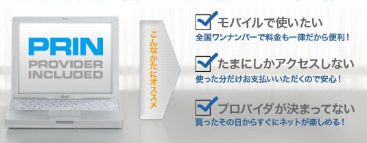 インターネット接続サービス「PRIN」は、AIR-EDGEや対応端末とパソコンでインターネットやEメールが利用できるサービスです。