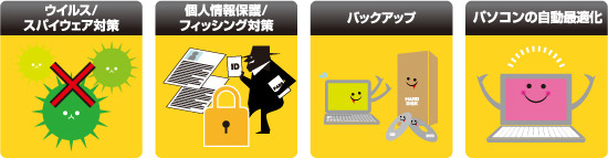 ネット犯罪からデータ紛失、パソコン不調まで、まるごとおまかせの自動実行。24時間365日いつでもパソコンライフを守ります。