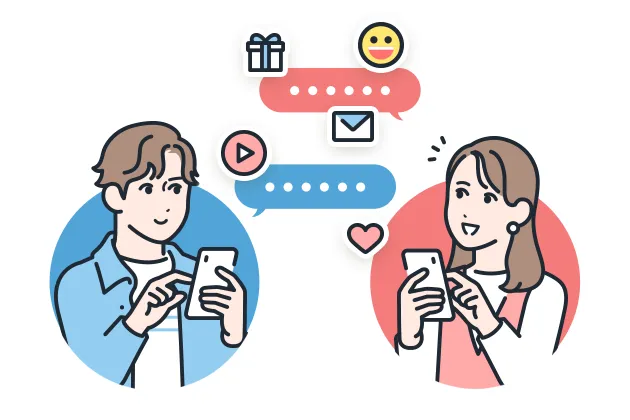 テキストに加えて、写真や動画、絵文字、スタンプ、音声メッセージも送信できます。