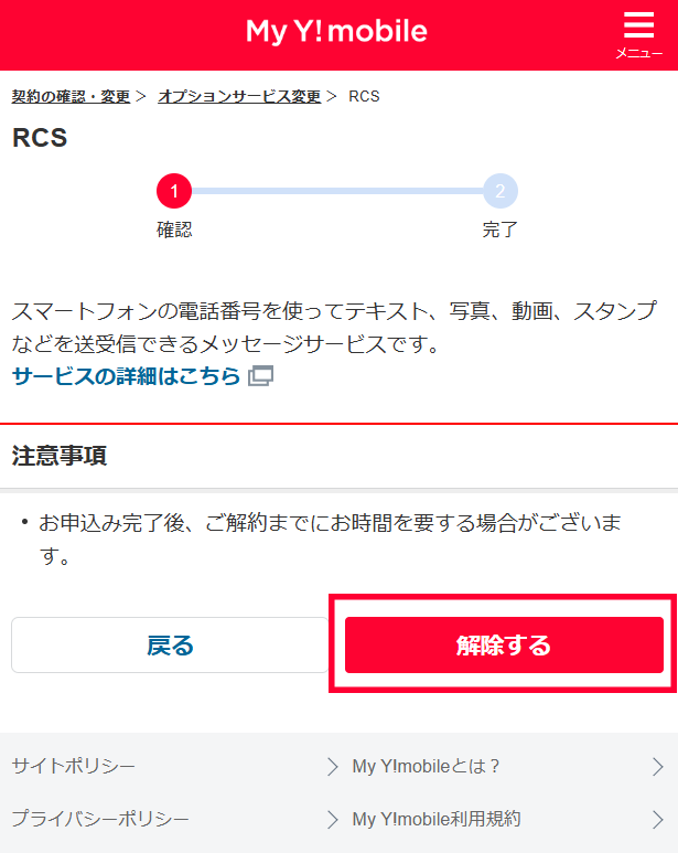 RCSのご利用を希望されない場合は、下記の手順に沿って設定変更を行ってください。