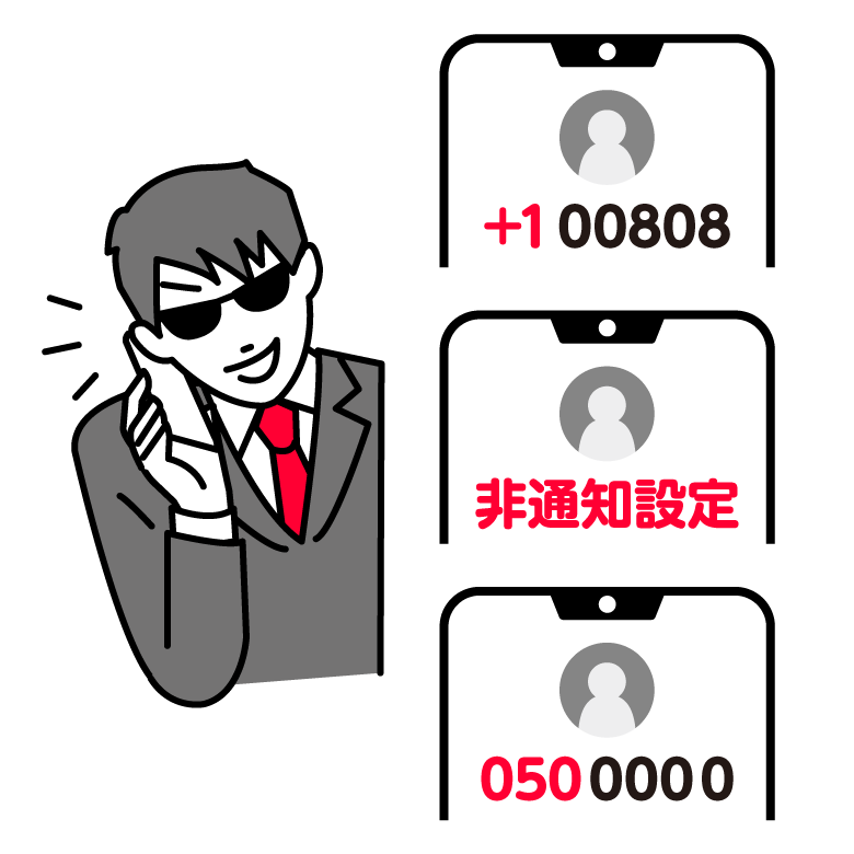 犯人は「+1」「+44」などから始まる国際電話番号を使用することが多いです。