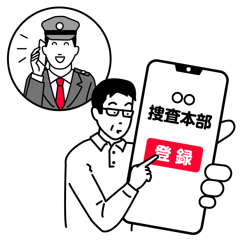 警察官の指示に従い、捜査本部のSNSを登録する。
