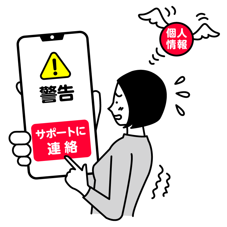 サポート詐欺は、インターネット閲覧中に「ウイルスに感染しました」という偽の警告画面と警告音で不安を煽り、画面に表示されたサポート窓口に電話をかけさせる手口です。修理名目で電子マネーカードを騙し取ったり、遠隔操作ソフトをインストールさせてネットバンキングを不正操作し、被害者から高額な現金を振り込ませるケースもあります。突然の警告に慌てず、サポート窓口に電話しないことが重要です。
