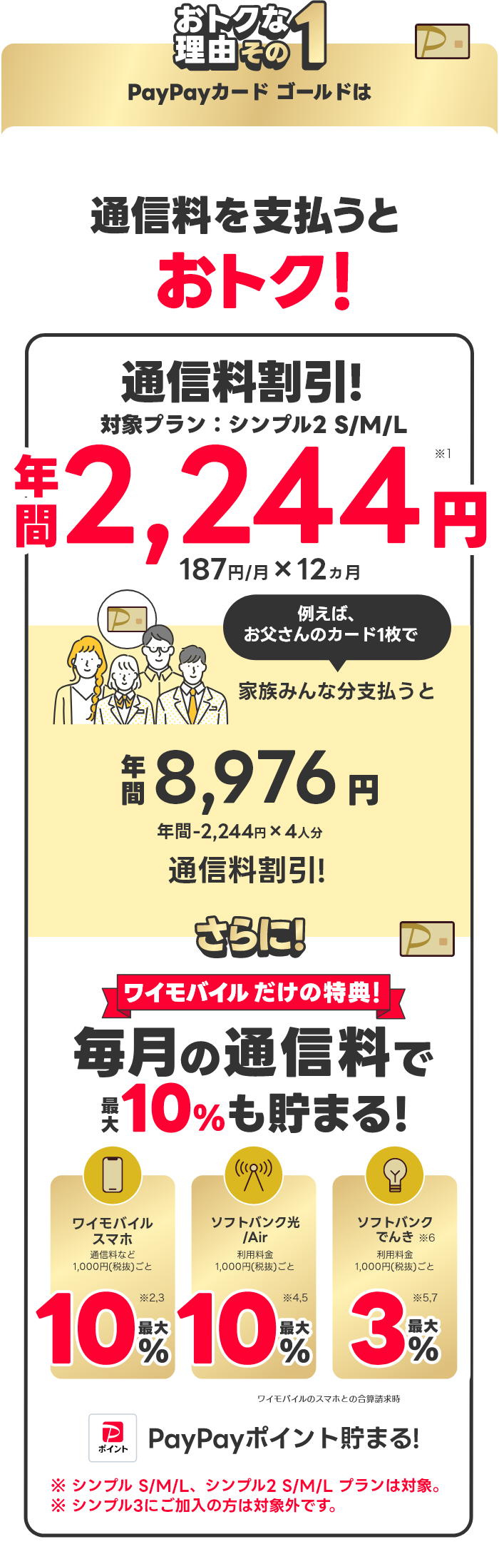 ※シンプル3の場合、ワイモバイルスマホ1%・ソフトバンク光/Air1%・ソフトバンクでんき1.5%の付与率となります。