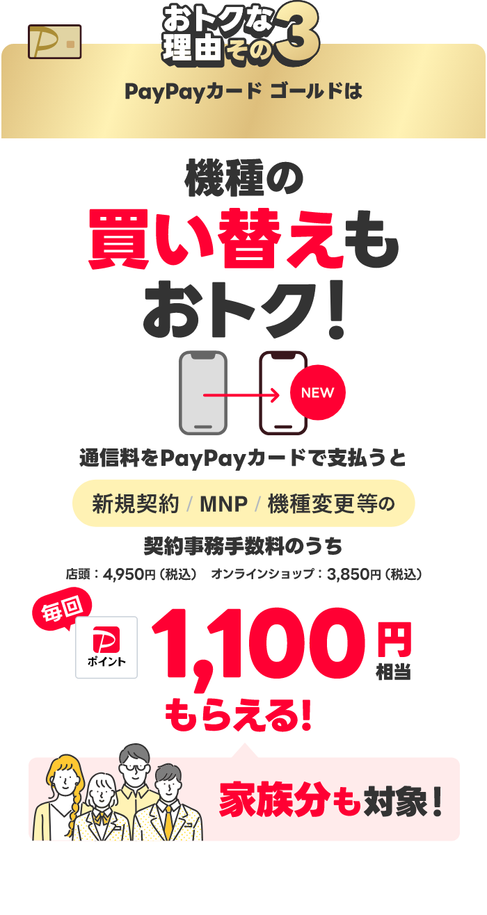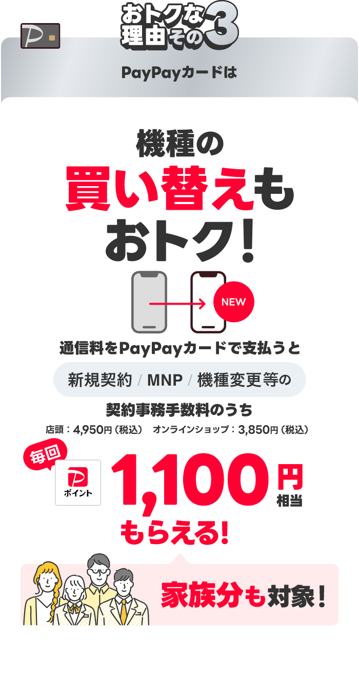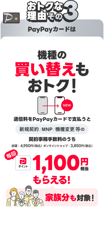 契約事務手数料が発生する対象手続きを行うこと(※対象手続き:新規/機種変更/SIM再発行/譲渡(名義変更)/電話番号変更/ブランド間のりかえ)。PayPayポイントは出金・譲渡不可。