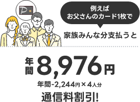 4,000円/月(税抜)×1.0%=40pt/月、40pt/月×4人×12か月=年間1,920pt