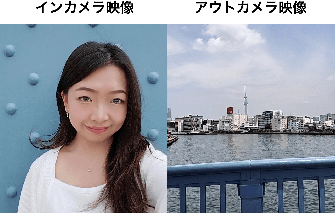 撮影者含めてその場の思い出を全部記録できる機能「アウト/イン同時動画撮影」を搭載。
