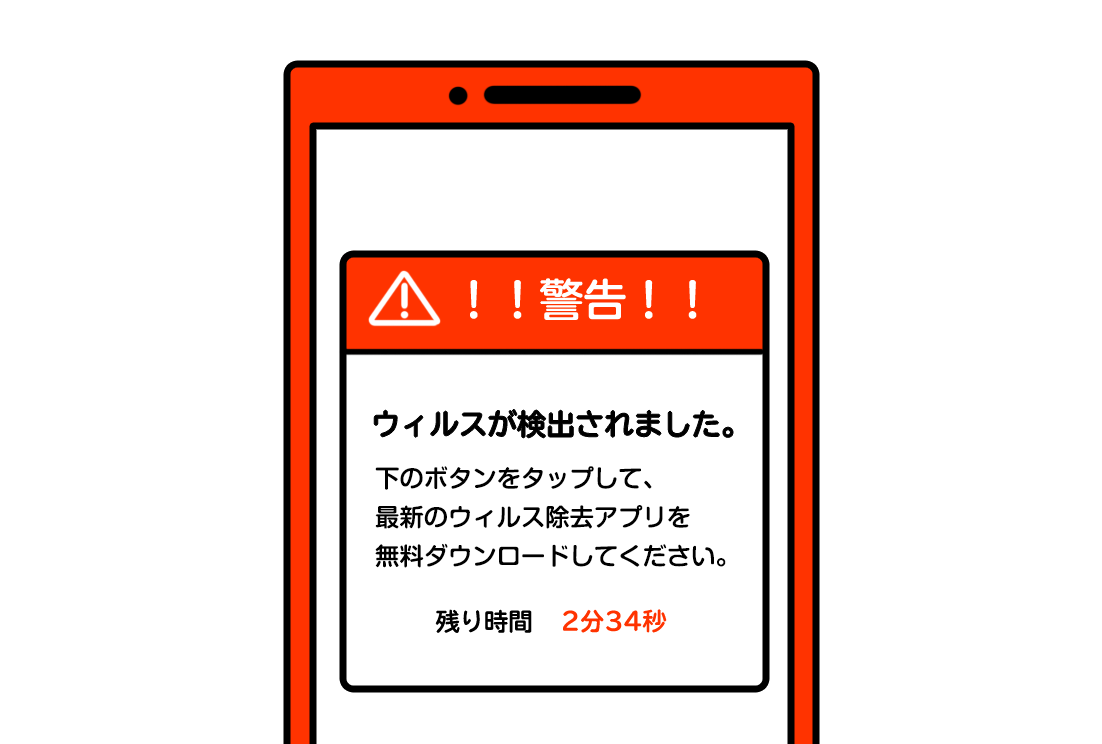 アラート警告は、実は偽物である可能性が高いです。アプリをダウンロードさせて、あとでお金を請求する、名前や連絡先などの個人情報をぬき取るといったこともあります。また、スマホがウイルスに感染して使えなくなることもあるので、何もせず、すぐに大人に相談しましょう。