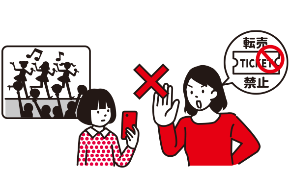 SNSで知らない人からチケットを買うと、「チケットが届かない」「お金だけ取られる」などのトラブルに巻き込まれるおそれがあります。特に未成年のうちは、SNS上での個人取引は避けましょう。ライブのチケットには、「転売(買って、ほかで売る)禁止」のものがあります。また、ライブ映像にも「無断転載(許可なくコピーしてアップする)禁止」として、勝手に使うと「著作権侵害」という罪に問われることもあります。チケットの購入や映像のコピーにはルールがあるので、注意しましょう。