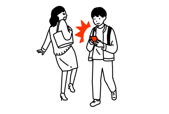歩きスマホはやってはいけないことです。禁止している自治体もあります。歩きスマホで事故を起こし、相手がケガをしてしまったら、責任を問われる可能性があります。治療費などが保護者に求められることもあります。スマホを見ていると周りが見えなくなるので、十分に注意してください。