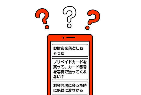 友だちから「自分の代わりにプリペイドカードを買って、カードの番号を教えてくれないかな。お金は次に会ったときに絶対に渡すから」というメッセージが……。あなたがしてはいけないことはどれですか?
