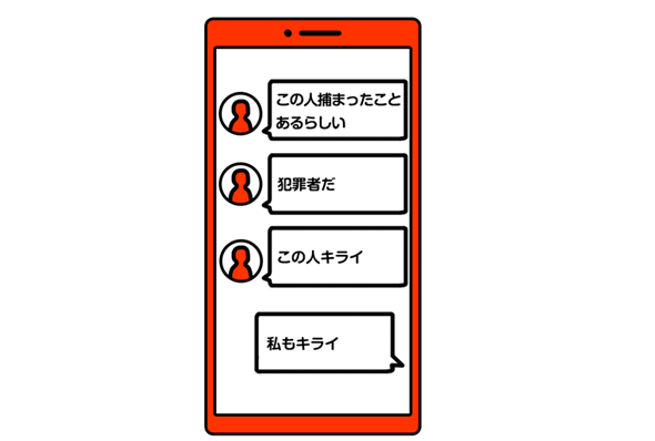 SNSの24時間で消えるメッセージ機能で、「○○くんが生意気でむかつく、嫌い」と公開範囲を限定して公開しました。この投稿について正しいものをすべて選んでください。