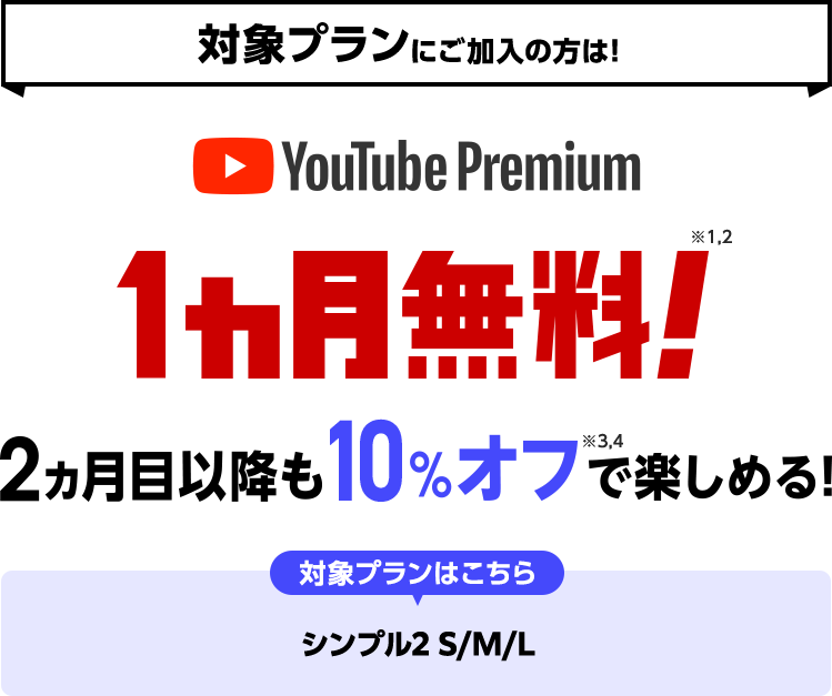 ●「家族割引サービス」は、シンプル3 S/M/Lの場合、2回線目以降の基本使用料が毎月1,100円割引となるサービスです。(最大9回線まで)●おうち割 でんきセット(E)・おうち割 光セット(A)は併用不可