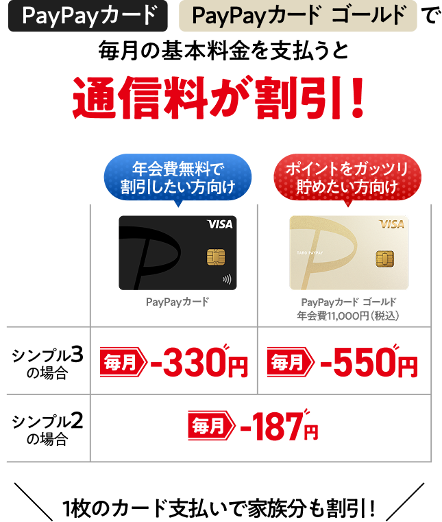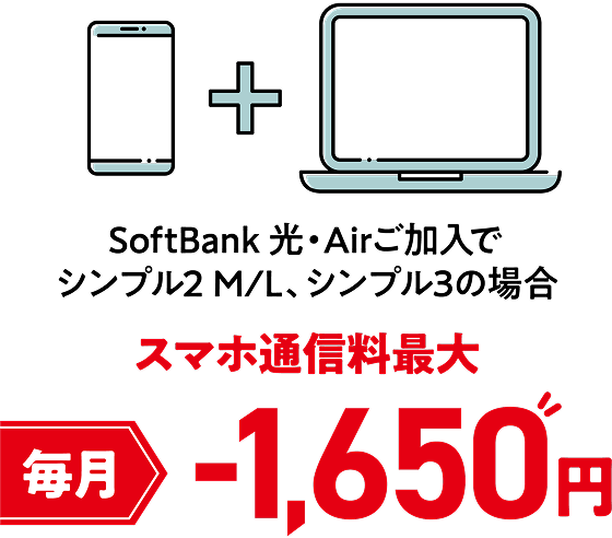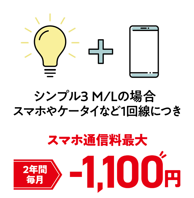 シンプル2 Sは毎月1,100円割引、シンプルS/M/Lは毎月1,188円割引。