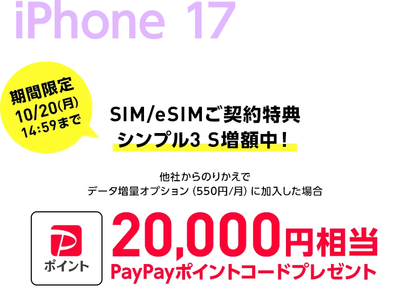 SIM/eSIMのご契約でPayPayポイントコードプレゼント SIM/eSIMのご契約でPayPayポイントコードプレゼント