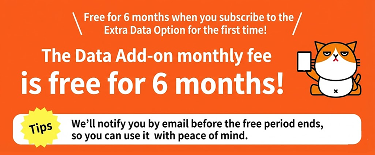 ●Data volume will be consumed in the following order: carried-over data > specified capacity (including data increase through Extra Data Option) > additional purchased data volume.