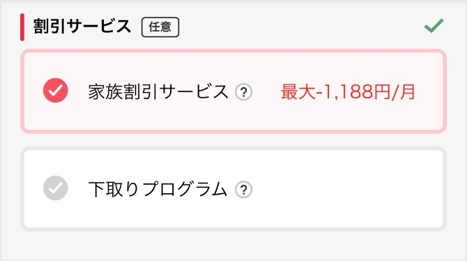 ログイン後、契約確認変更タブから家族割引サービスを選択し、お申し込みください。