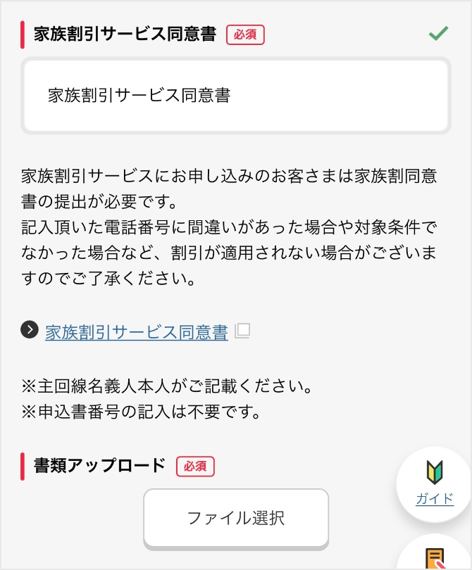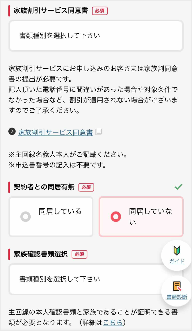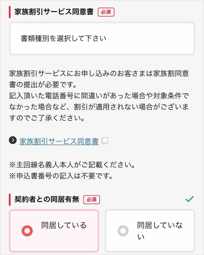 家族割引サービスを選択後、家族割引サービスの申し込み情報を入力してください。