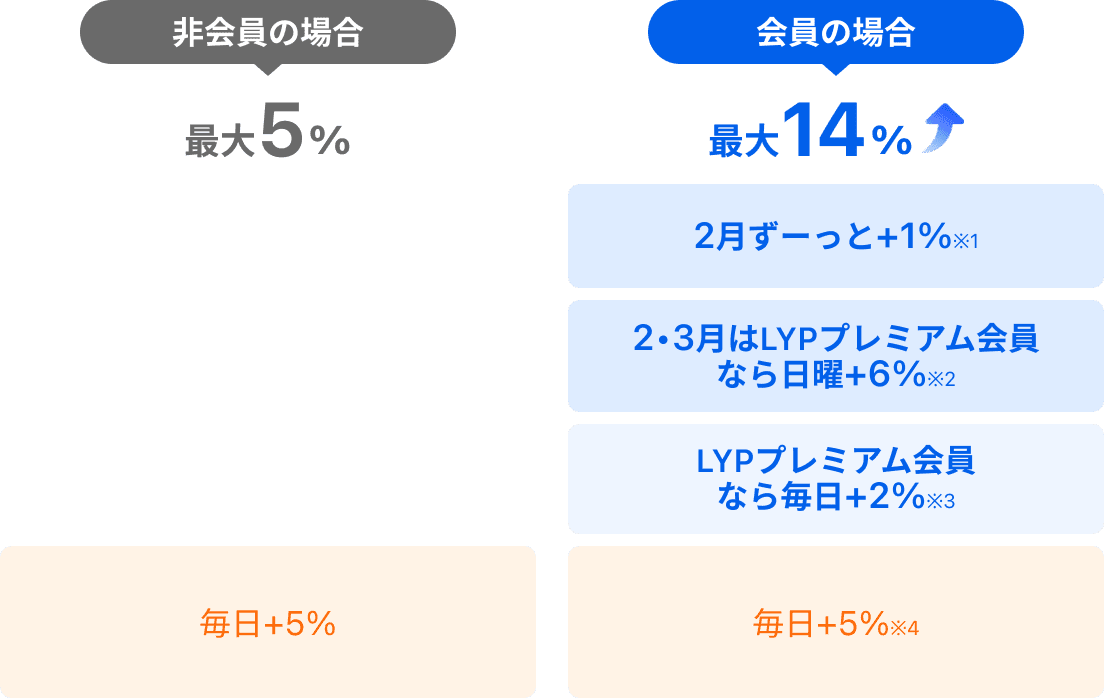 ※2 2・3月はLYPプレミアム会員なら日曜+6%(本施策)