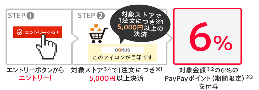 ※3 付与されるPayPayポイントは、PayPayポイント(期間限定)です。LINEヤフー株式会社の一部サービスおよびPayPay/PayPayカード公式ストアでも利用可能。出金・譲渡不可。付与上限は、本キャンペーン開催期間中お1人様あたり2,000円相当です。