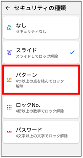 - パターンを指でなぞって画面ロックを解除するように設定する