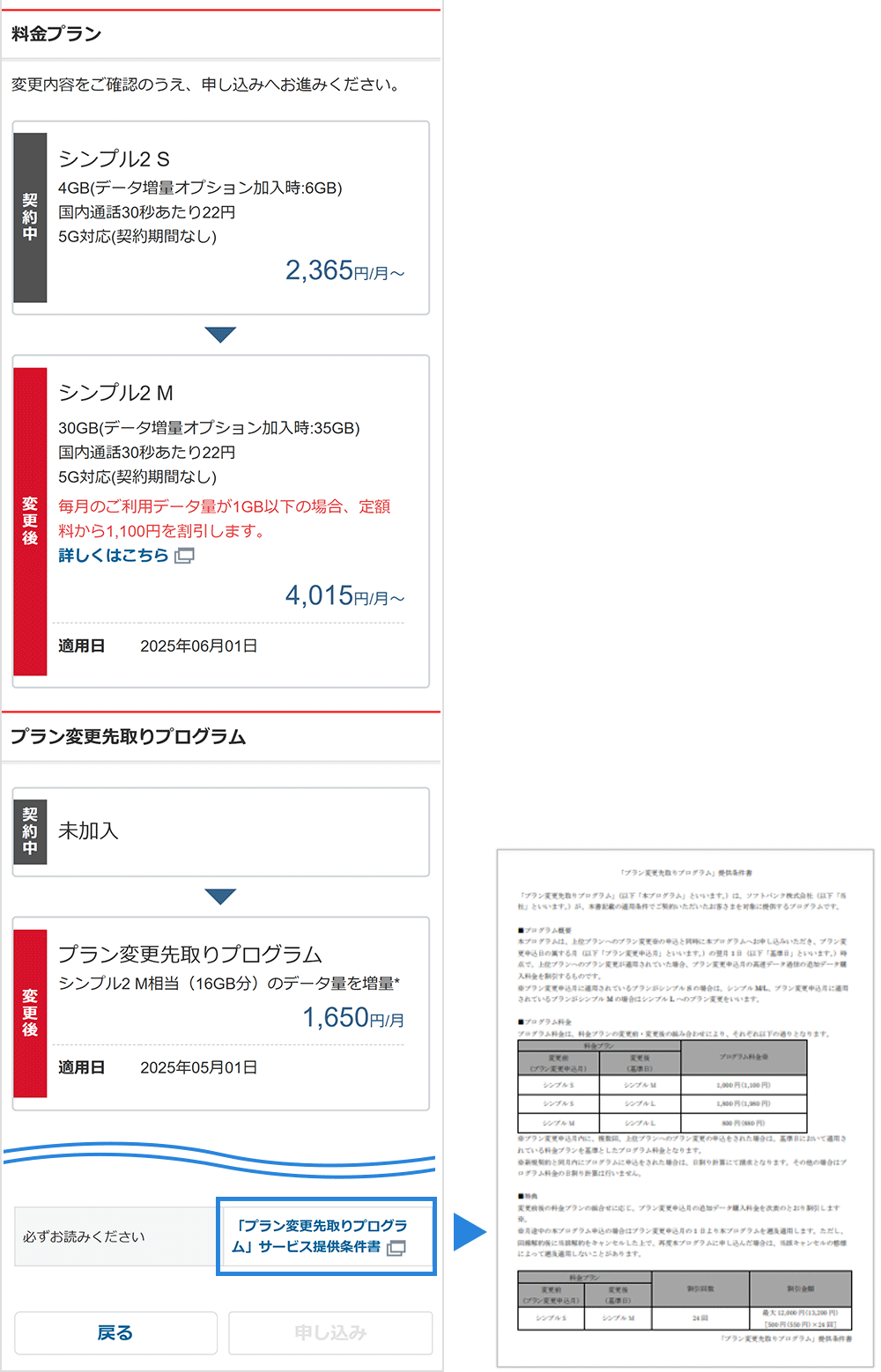 「プラン変更先取りプログラム」提供条件書