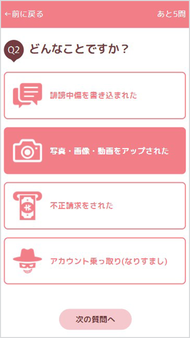以下のようなネットトラブルについて、心配ごとを気軽にチェックできます。