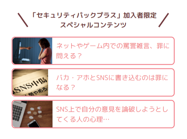セキュリティパックプラスご加入者限定で、日常生活で起きるネットトラブルに役立つ対処方法の記事が読めます。