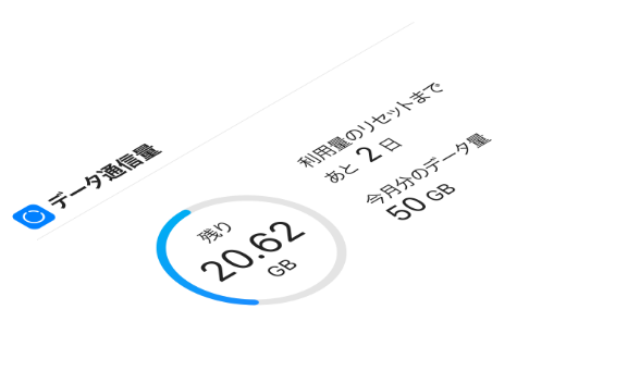 アプリを開いてすぐに目に入る場所に料金とデータ通信量をまとめました。現在のご利用状況をいつでもひと目でご確認いただけます。