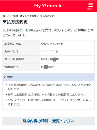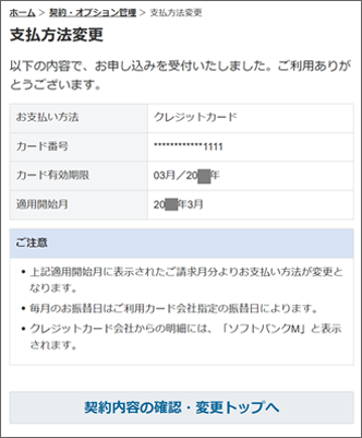 • ※ お支払方法変更後の取り消しはできません。再度ご希望のお支払方法への変更手続きを行ってください。