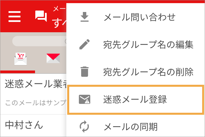 「迷惑メール登録」アイコンをタップします。